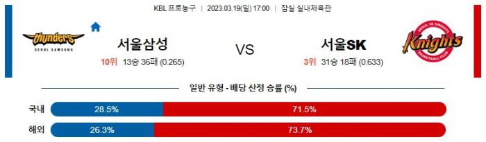 【KBL】 3월19일 서울삼성 vs 서울SK