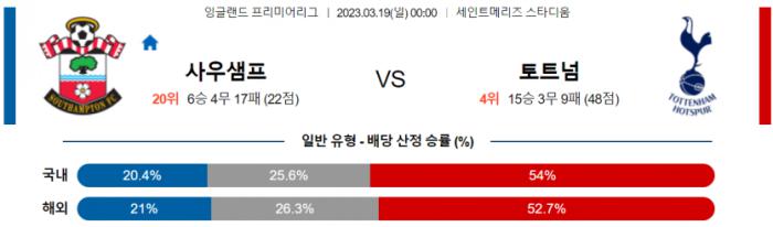 프리미어리그 3월 19일 00:00 사우샘프턴 : 토트넘 홋스퍼