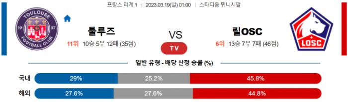 리그앙 3월 19일 00:59 툴루즈 FC : 릴 OSC