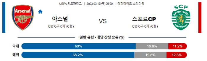 UEFA 유로파리그 3월 17일 05:00 아스날 : 스포르팅 CP