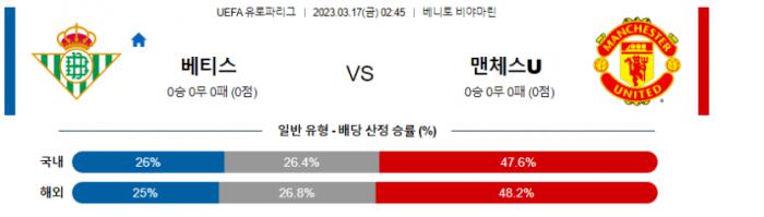 UEFA 유로파리그 3월 17일 02:45 레알 베티스 : 맨체스터 유나이티드