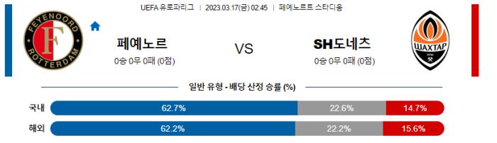 UEFA 유로파리그 3월 17일 02:45 페예노르트 : 샤흐타르 도네츠크