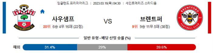 프리미어리그 3월 16일 04:30 사우샘프턴 : 브렌트퍼드 FC