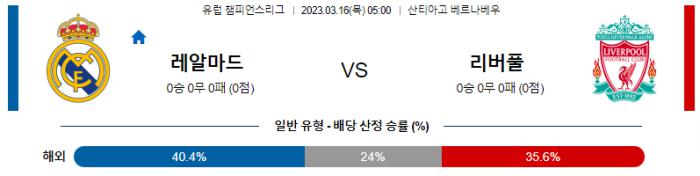 UEFA 챔피언스리그 3월 16일 05:00 레알마드리드 : 리버풀