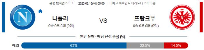 UEFA 챔피언스리그 3월 16일 05:00 SSC 나폴리 : 프랑크푸르트