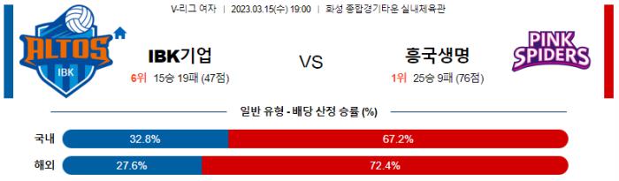 3월 15일 19:00 V-리그 여자 IBK기업은행 : 흥국생명