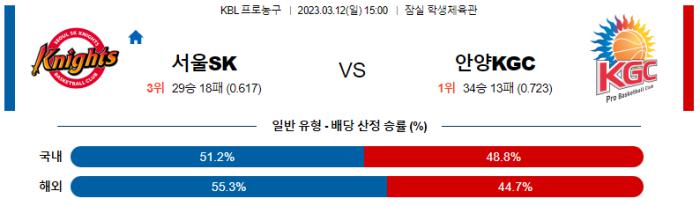 3월 12일 15:00 KBL 서울 SK : 안양 KGC