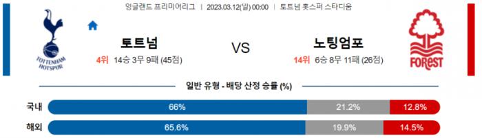 EPL 3월 12일 00:00 토트넘 홋스퍼 : 노팅엄 포레스트