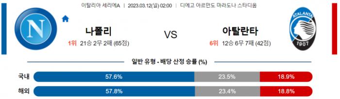 세리에A 3월 12일 02:00 SSC 나폴리 : 아탈란타 BC