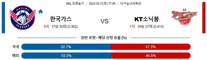 【KBL】 3월11일 대구한국가스공사 vs 수원KT