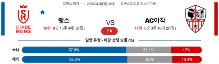 랭스의 승리를 점칩니다. 아작시오의 호전성을 수비가 강한 랭스가 잘 제어할 가능성이 높고, 실제로 아작시오가 수비가 강한 낭트나 니스를 상대로는 득점에 성공하지 못하고 수비적인 약점만 드러냈다는 점을 감안하면 가능성이 상당히 높은 시나리오. 특히 랭스가 최근에는 대량득점에도 자주 성공하면서 발로건에 대한 의존도에서 어느 정도 벗어나는 모습을 보인 만큼, 랭스의 성과가 상당히 밝은 상황이라고 할 수 있을 것입니다.