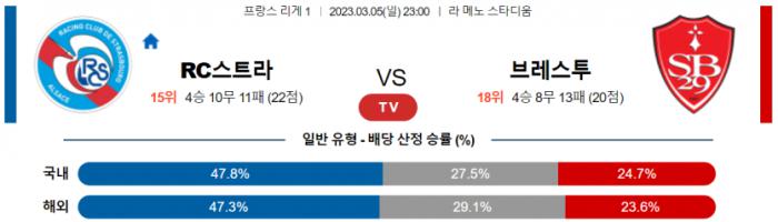 리그앙 3월 5일 23:00 RC 스트라스부르 : 스타드 브레스트 29