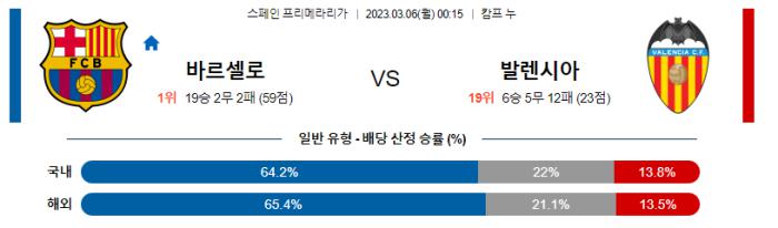 프리메라리가 3월 6일 00:15 FC 바르셀로나 : 발렌시아