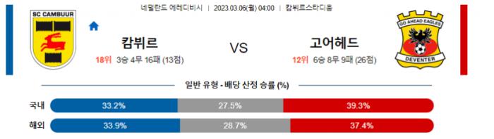 에레디비시 3월 6일 04:00 SC 캄뷔르 : 고 어헤드 이글즈