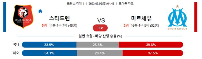 리그앙 3월 6일 04:45 스타드 렌 FC : 올림피크 마르세유