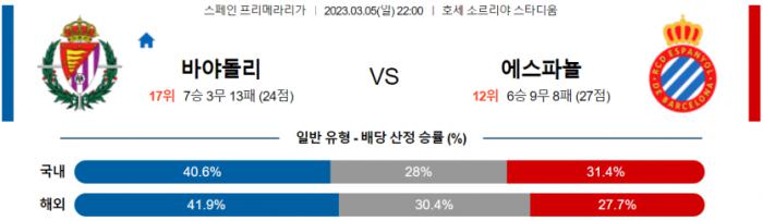 프리메라리가 3월 5일 22:00 레알 바야돌리드 : RCD 에스파뇰