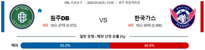 3월 4일 14:00 원주 DB : 대구 한국가스공사