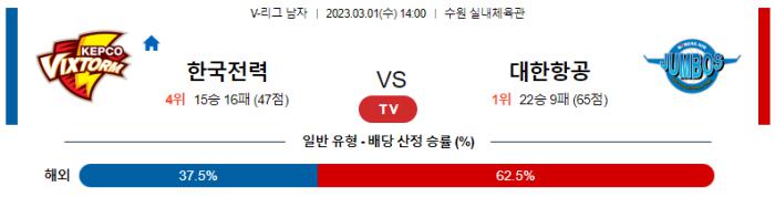 3월 1일 14:00 V-리그 남자 한국전력 : 대한항공