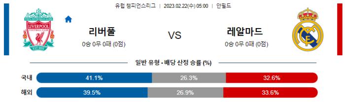 UEFA 챔피언스리그 2월 22일 05:00 리버풀 : 레알 마드리드