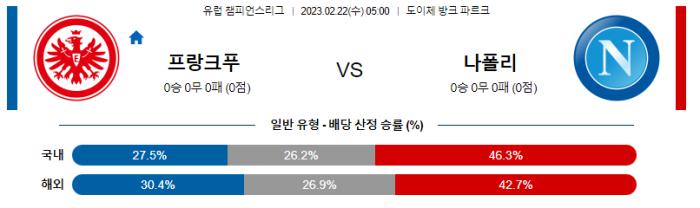 UEFA 챔피언스리그 2월 22일 05:00 프랑크푸르트 : SSC 나폴리