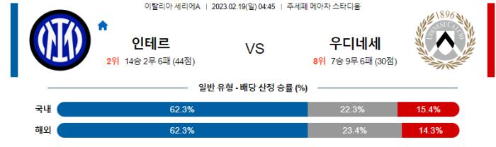세리에A 2월 19일 04:45 인터 밀란 : 우디네세 칼초