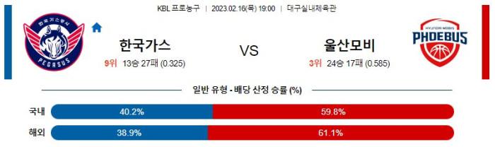 【KBL】 2월16일 대구한국가스공사 vs 울산모비스
