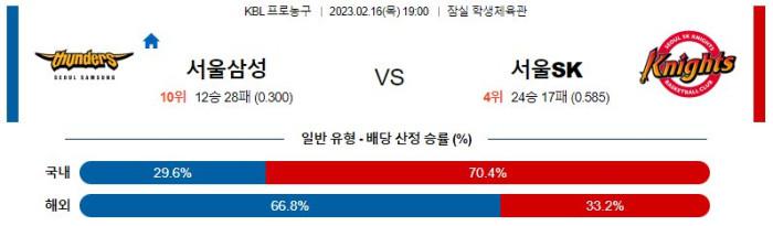 【KBL】 2월16일 서울삼성 vs 서울SK