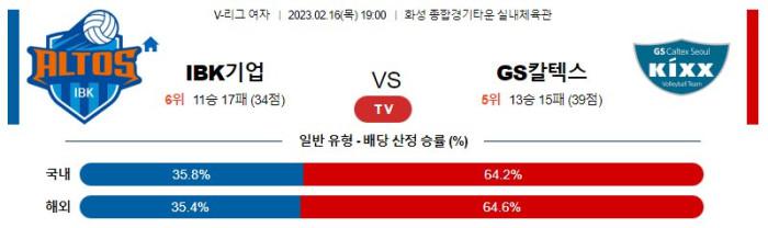 【V-리그(w)】 2월16일 IBK기업은행 vs GS칼텍스