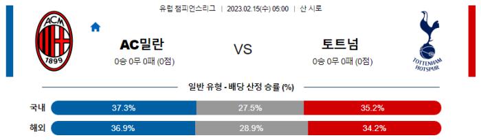 UEFA 챔피언스리그 2월 15일 05:00 AC 밀란 : 토트넘 홋스퍼