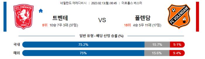 에레디비시 2월 13일 00:45 트벤테 : FC 폴렌담