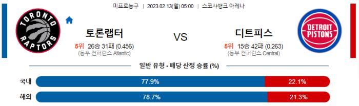 토론토는 캠 버치, 2024 드래프트 1라운드 지명권, 미래 2라운드 지명권을 샌안토니오에게 주고서 빅맨 자원이 되는 야곱 퍼들을 영입했습니다. 베스트5 싸움에서 토론토가 한수 위에 있는 전력입니다. 토론토 승리 가능성을 추천 합니다.