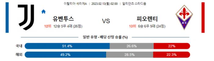 세리에A 2월 13일 02:00 유벤투스 : ACF 피오렌티나