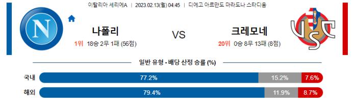 세리에A 2월 13일 04:45 SSC 나폴리 : US 크레모네세