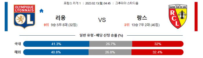 리그앙 2월 13일 04:45 올랭피크 리옹 : RC 랑스