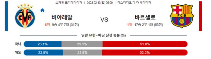 프리메라리가 2월 13일 05:00 비야레알 : FC 바르셀로나