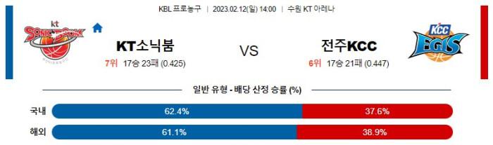 2월12일 KT 소닉붐 전주 KCC KBL 남자 프로농구 경기가 예정이 되어있습니다. 오후 2시에 시작이 되는 이번경기는 수원 KT의 홈에서 진행이 되는 경기입니다. 수원 KT는 7위를 기록중이고 전주 KCC는 6위를 기록중인데 KT 소닉붐 전주 KCC 두 팀의 전력은 큰 차이는 없을것으로 보입니다.