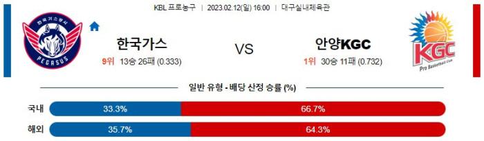 【KBL】 2월12일 한국가스공사 vs 안양KGC