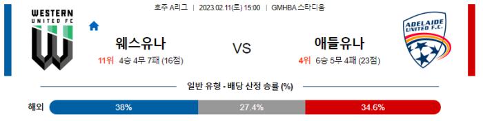 【호주 A리그】02월11일 웨스턴 유나이티드 FC vs 애들레이드 유나이티드 FC