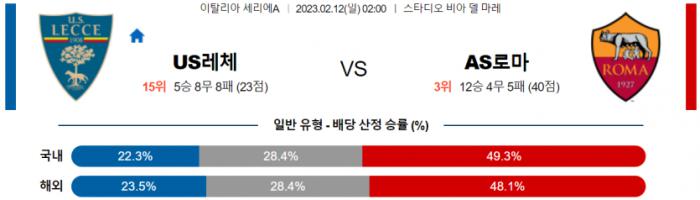 【세리에A】02월12일 US 레체 vs AS 로마