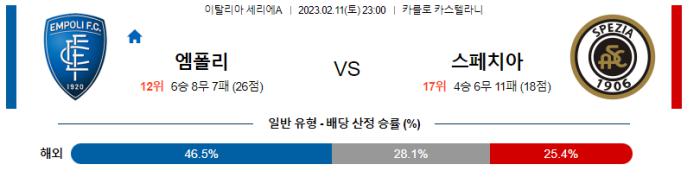 【세리에A】02월11일 엠폴리 vs 스페치아 칼초