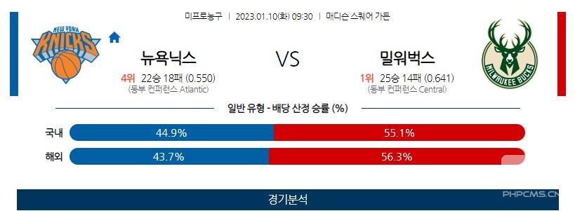 【NBA】01월10일 뉴욕닉스 vs 밀워키