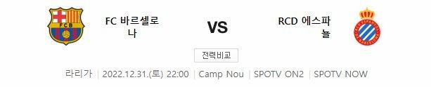 【라리가】12월31일 바르셀로나 vs 에스파뇰