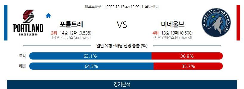 【NBA】 12월13일 포틀랜드 vs 미네소타