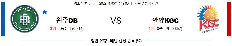 【KBL】 11월3일 원주DB vs KGC인삼공사