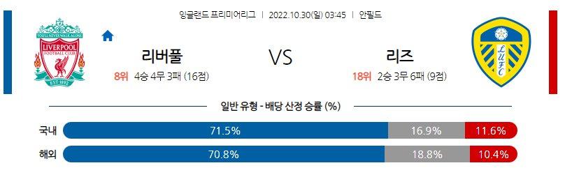 【프리미어리그】10월30일 리버풀 vs 리즈유나이티드