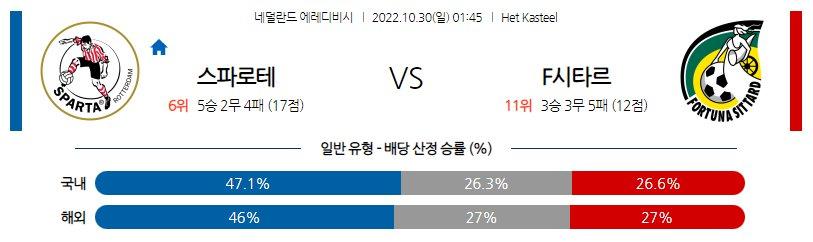 【에레디비시】10월30일 스파르타로테르담 vs 포르투나시타르트
