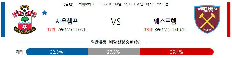【EPL】 10월16일 사우샘프턴 vs 웨스트햄