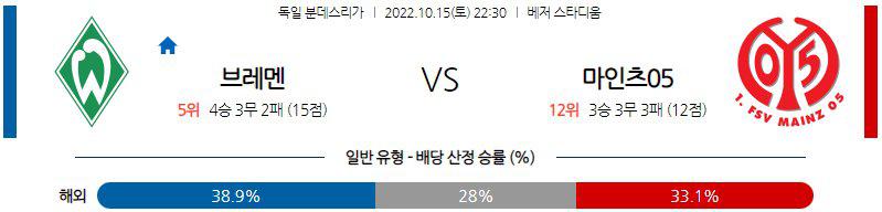【분데스리가】 10월 15일 SV 베르더 브레멘 vs FSV 마인츠 05
