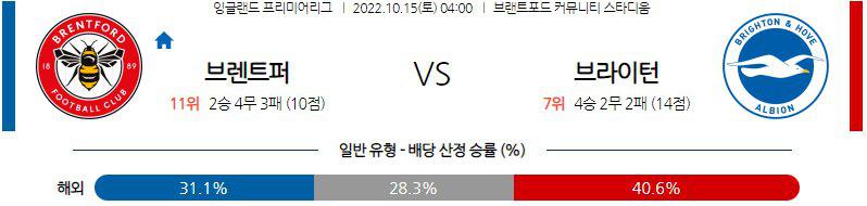 【EPL】 10월 15일 브렌트포드 FC vs 브라이튼 앤 오브 앨비언