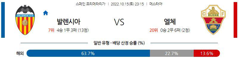 【Laliga】 10월 15일 발렌시아 CF vs 엘체 CF